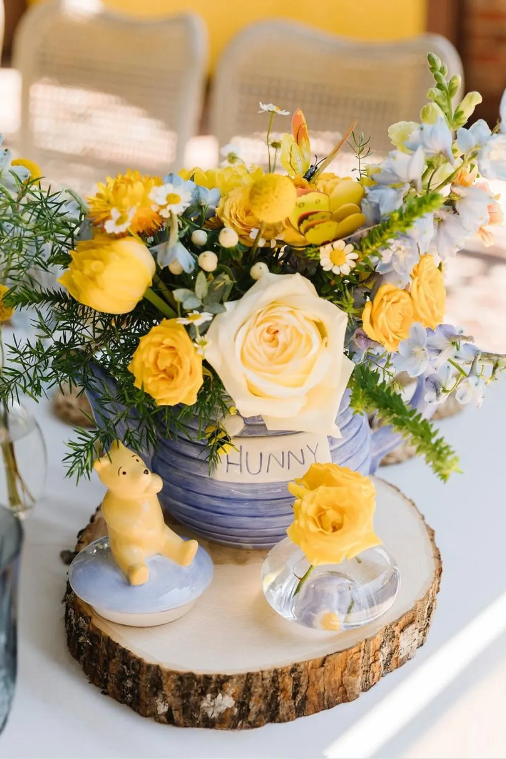 Adding flower arrangements to your food table is the perfect way to celebrate the outdoorsy-ness of Winnie the Pooh.