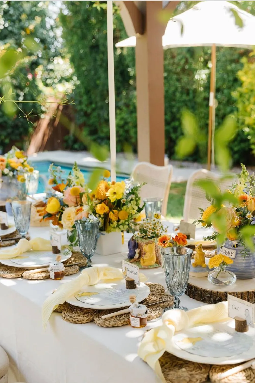 I think this idea works so well if you love the Winnie the Pooh theme idea, but don’t want it to look to much like a kid’s birthday party. This is a lovely way to celebrate the story of that silly old bear, while keeping it a very grown-up and beautiful party.